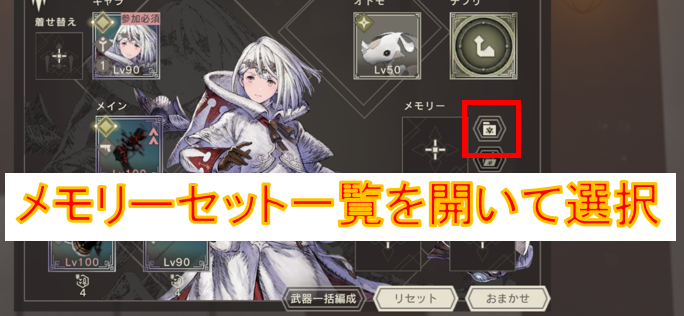 メモリーは、先の項目で作っておいたメモリーセットを活用しましょう。奇襲アビリティを持ったキャラだとクリ率が100%を超えてしまいますが、気にせず編成して問題ありません。
