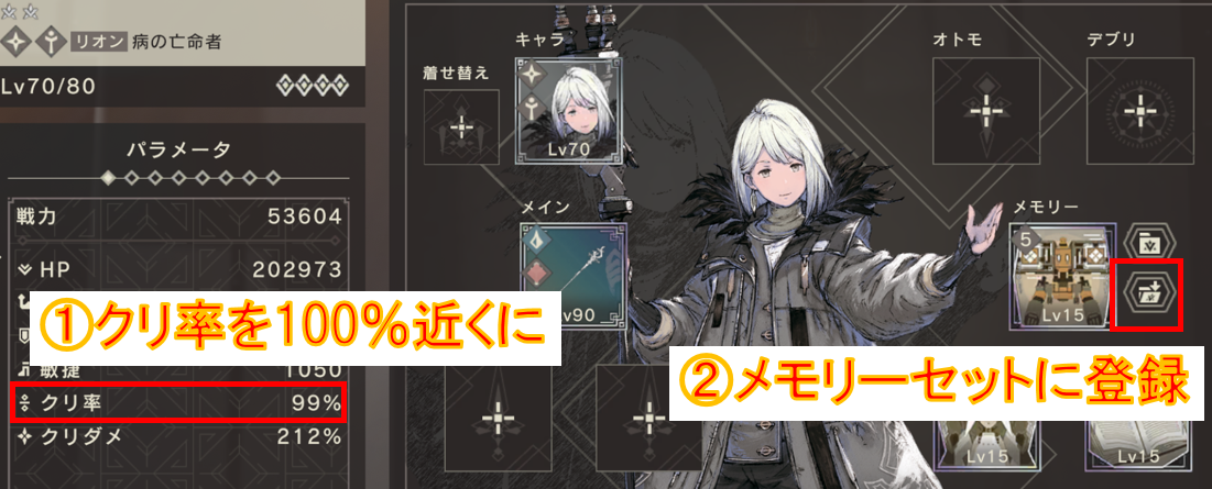 事前に、クリ率がほぼ100%になるメモリーセットを3つ用意しておきましょう。