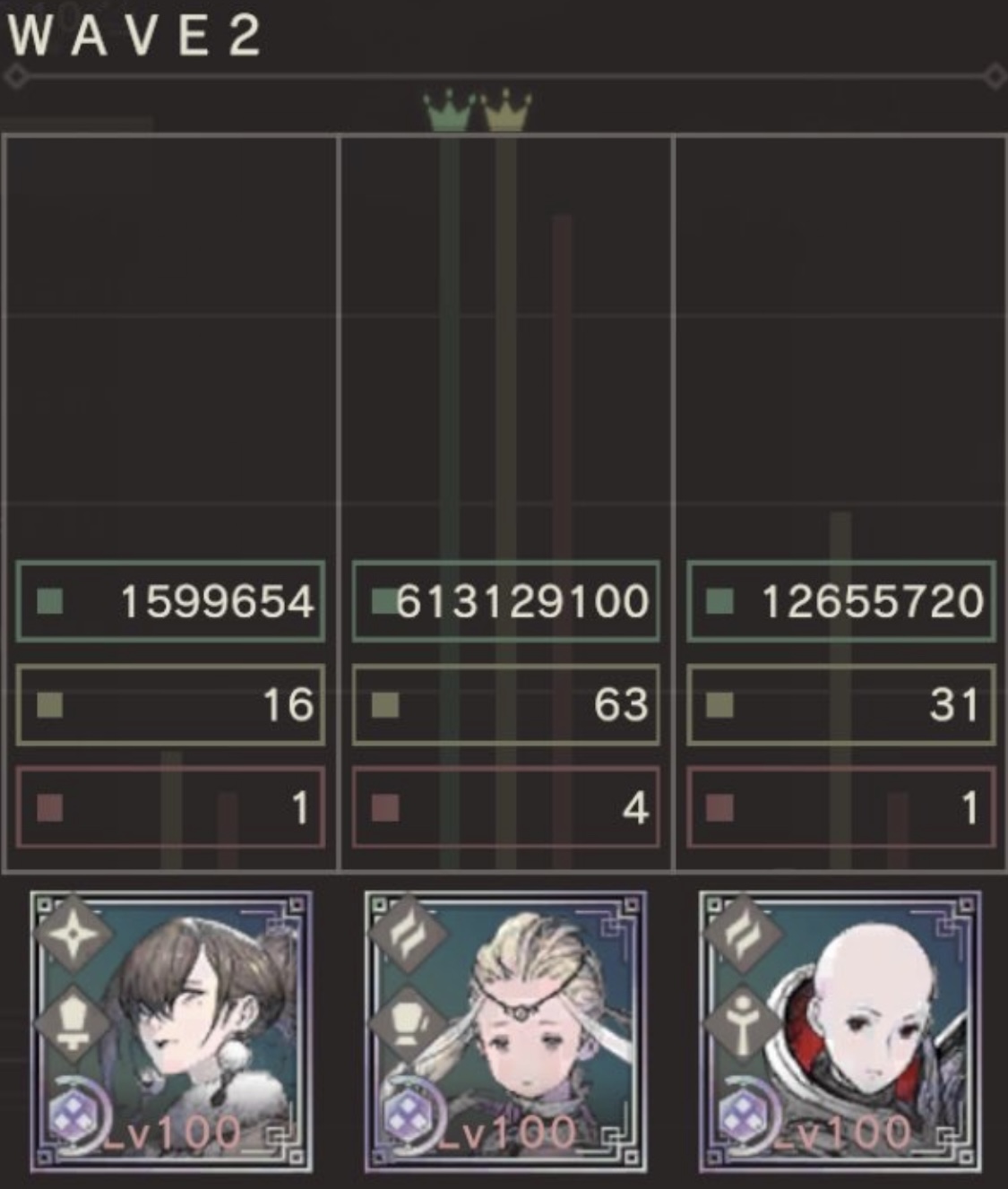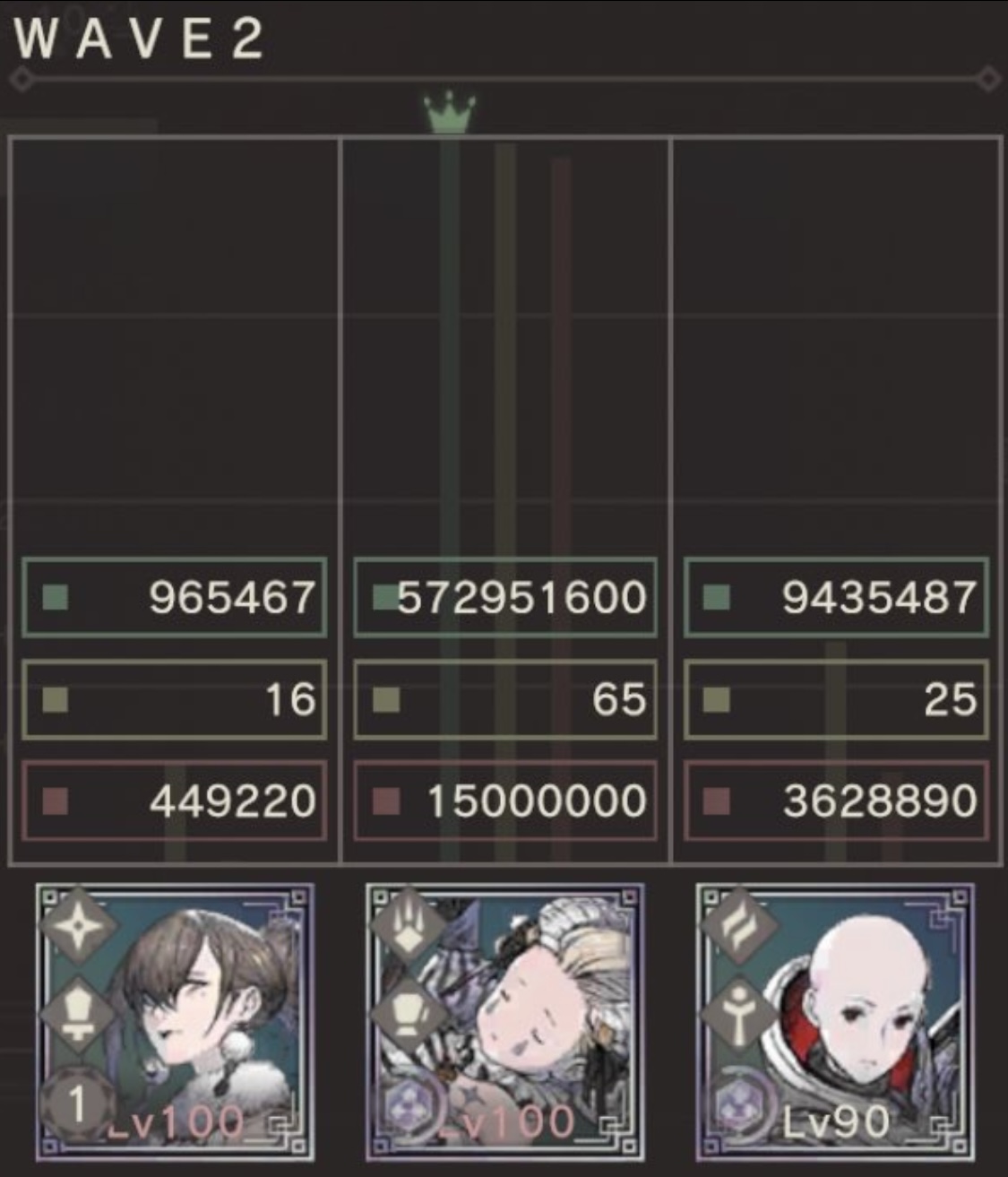 そこで、水タタリガミWAVE2にて、同じスキル回しを実施してWAVE中のダメージ値を比較してみました
